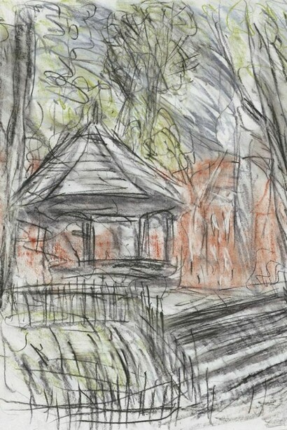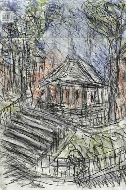 The earliest drawing in the exhibition, “Railway Bridge Mornington Crescent,” 1952, depicts an austere London, its sky filled with smoke produced by the coal-fired power stations of the time. By contrast, Kossoff’s more recent drawings of Arnold Circus, his childhood neighborhood, incorporate light, color and energetic gesture striking a more opportunistic tone.