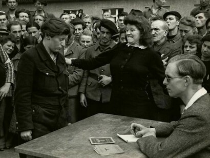 From the early Thirties, Cartier-Bresson traveled in Italy, Spain, and Mexico, seeking out the world of the “dispossessed, the marginal, and the illicit,” a world far from his bourgeois Paris upbringing, but a world which he eagerly accepted as his own: “I prowled the streets all day, feeling very strung-up and ready to pounce, to preserve life in the act of living,” as seen in this iconic images of “Seville,” 1933 and “Calle Cuauhtemocztin,” 1934. His work from this period has been described by the former Museum of Modern Art curator Peter Galassi, as possessing the “unpredictable psychic force of straight photography” while simultaneously depicting the “street as an arena of adventure and fantasy only thinly disguised by the veneer of daily routine.”