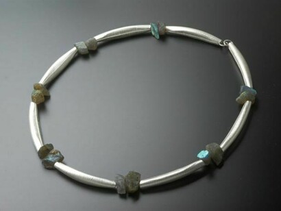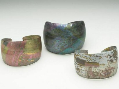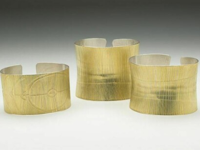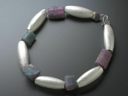 Many of her forms have emerged from the making process and the properties of the material itself. In recent years we have seen a move into the use of precious metal and stones, though often still in her familiar organic forms.