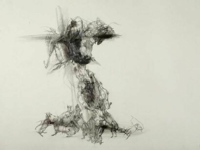 Born in 1966, Lanfranco Quadrio is a draftsman and engraver whose highly accomplished, complex and dynamic drawings fuse the ability of the Italian Old Masters with a highly personal contemporary vision. Quadrio’s obsession with the world of Greek myths and his extraordinary technical ability transports the viewer back to the golden epoch of Italian drawing. Yet the violence present in the works, his experimentation with colour and lines on the canvas immediately returns us to our contemporary world.