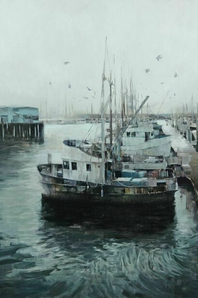 By observing the environments and structures seen along the coast, Cogan brings together the sensibilities and techniques he applied to create his atmospheric city scenes and kinetic wave paintings and seascapes.