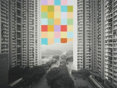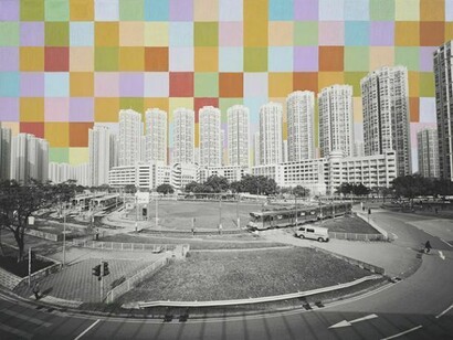 Every Daily marks a breakthrough in Ho’s creative work. In a departure from his previous photography, this new series is his first to incorporate the element of painting, based on a collection of black and white photographs of Tin Shui Wai. One of the largest new towns in Hong Kong, Tin Shui Wai is packed with newly-built, large-scale residences. The artist fills the sky between the densely packed residential buildings with uniformly sized blocks of different colors. The black and white photography stands in contrast to the colors of the painting, while painting interferes with the photos to blur the proportion and the sense of distance between objects. The result is a collection of sharply intriguing images.