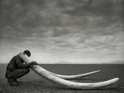 - Nick Brandt, Ranger with Tusks of Killed Elephant, Amboseli, 2011, Courtesy of the Artist and Hasted Kraeutler, NYC.