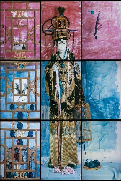 María Magdalena Campos-Pons is one of the most prominent artists to emerge from post- Revolutionary Cuba and one of the most relevant artists presently working in the US. Her progressive transdisciplinary discourse, which includes performance, photography, painting, drawing, video, installation art and site- specific interventions, locates her oeuvre at the forefront of contemporary art practices. The exhibition presents Campos- Pons’ newest body of work in the medium of photography and drawing. Contemplative and poetical, the works are deeply invested in important contemporary topics of exilic identity, individual freedom, cultural heritage and hybridism, and racial and national politics. Starting with her own experiences of an Afro-Cuban woman whose ancestors were displaced from Africa, her exile and memories from Cuba, as well as her experience of living in the United States, Campos-Pons’s oeuvre approaches identity as a fluid, contradictory and unstable rather than firmly fixed entity in today’s globalized world. Her visually striking compositions are often fragmented self- portraits against suggestive abstract backgrounds. They feature the artist’s body in costumes that merge elements and symbols of various cultures. By employing fragments of different traditions, religions and mythologies, in particular the Yoruba, Spanish and Chinese ones, Campos-Pons metaphorically speaks about the possibilities of rebirth, liberation and refinement in relation to the broader geopolitical issues.