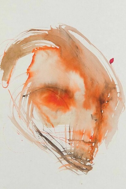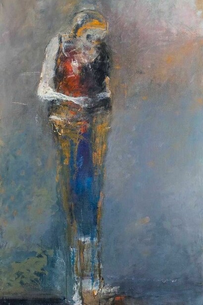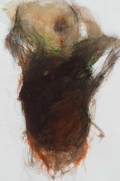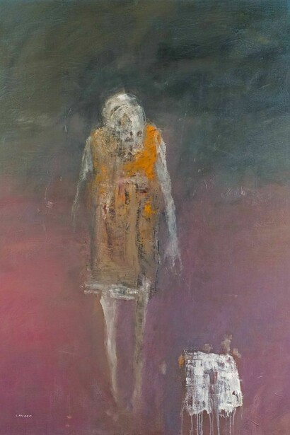 Lawand’s work is “engaged but non-political” as he himself states, and the themes he covers are universal rather than rooted to a single cause - though he does of course reflect on the suffering of the people of Syria. Both his paintings and drawings are dominated by elongated effigies with faceless heads hanging or hiding in their hands, indistinct from the formless backgrounds they float in, appearing motionless and displaced, or indeed without place, often solitary or with a child. Yet the artist describes his work as essentially “optimistic” and life-affirming, stating: