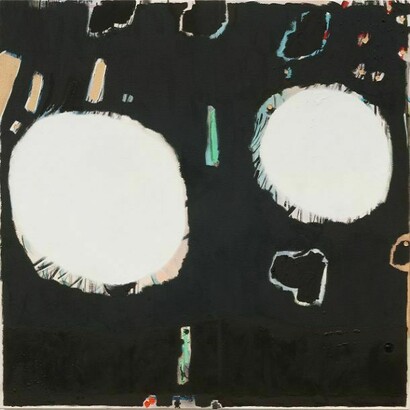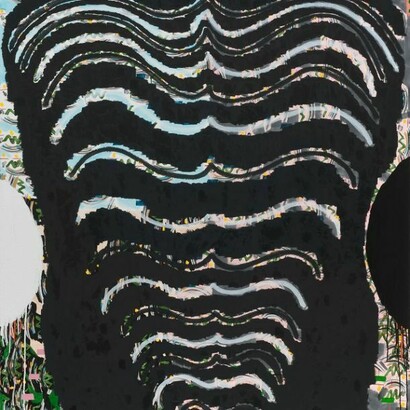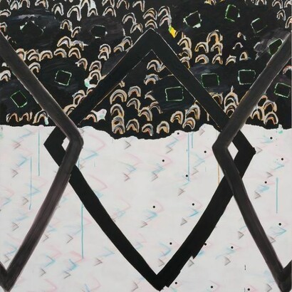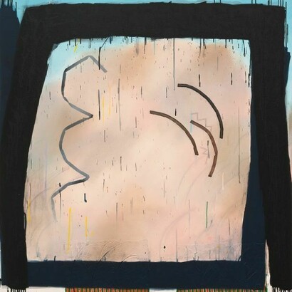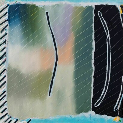 A sense of paradox and simultaneity extends to every facet of Miller’s work, from color palette to materials, mark-making to composition. Transparent sky blues and peachy-pinks are both highlighted and negated by expanses of thick, black impasto. Crusty surfaces of a muddy, dirt and paint mixture abut wispy, hair-like lines of saturated color. Flecks and drips of paint belie the fact that, often, the canvases are worked in multiple orientations before coming to rest. Compositionally, Miller’s paintings hover, grazing everything from landscape to portraiture, collage to cartoons. They are at once agile and ham-fisted in their approach to abstraction. This mutability makes for a kind of freedom, as Miller’s paintings choose to prioritize experience over certainty.