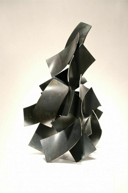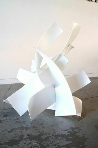 The sculptures of Matt Devine present a dramatic and powerful congruence of form. His mastery of manipulating the material to do as he wishes is seamless. Numerous pieces fold, twist, arc and tilt. Shadows play with the forms and expand the impact of his work. A minimalistic sensibility and repetition of form create a beautiful sense of balance and harmony. His sculptures rest on walls, floors, and pedestals and also encompass large-scale commissions. Devine was born in Salem, MA. He currently lives and works in Southern California. His museum exhibitions include Oceanside Museum of Art, CA and MCA San Diego. He has had solo exhibitions at Madison Gallery, La Jolla, CA and Laura Rathe Fine Art, Houston, TX. He has many public commissions including Tom Ford Showroom, London, England; El Cruce, Trizetto Corporation, Englewood, Colorado; On the Left Side, New World Development, Ltd. Hong Kong; and Pacific Terrace Hotel, Untitled Brass Entry, Pacific Beach, CA among many others.