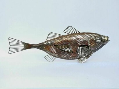 Scrap metal transformed into birds, insects and fish of astonishing delicacy exhibition at Sladmore Contemporary from November 27 2013 until January 31 2014.