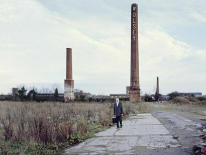 The backdrop for Leicestershire is a quasi-deserted post-industrial landscape of dystopian aura. Abandoned manufacturing plants stand therein, in various states of dereliction: they bear testament to the region’s former industrial glory and point out to its uncertain future. Solitary human figures occasionally appear, set against the threatening skeletons of the crumbling factories.