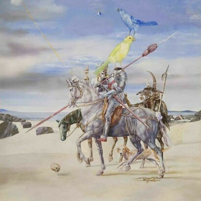 Bessmertny draws references from history, classics, and philosophy to highlight the absurdity of contemporary life. The works recast historical figures as victims of modern society, for example Queen Victoria is depicted as a woman obsessed with beauty and cosmetics, while Mikhail Bakunin is cast as a rebel complete with cigarette dangling from his lips, or places them in surreal but picturesque settings. They draw on Bessmertny’s experiences and observations of life in Macau: a city that has been completely transformed within the past 10 years from a quiet Portuguese colony to the most densely populated city in the world, rivalling Las Vegas for its title of gambling capital. The result is works that parody our modern consumer society, highlighting its ironies and acting as an ominous warning.