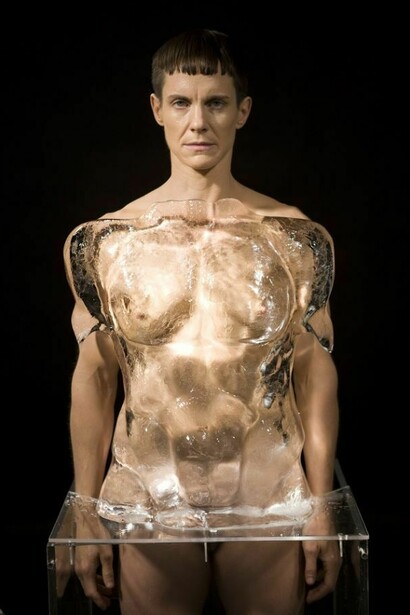 In the one-channel video installation Tiresias, the artist’s body is pressed up against an ice sculpture of a neoclassical Greek male torso. The performance takes its name from the mythological figure of the blind prophet of Thebes, who was transformed from a man to a woman for seven years. Over the course of the performance, Cassils melts the sculpture with nothing but pure body heat, demonstrating the instability of the body, and our desire for a certain unsustainable physique.