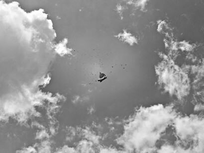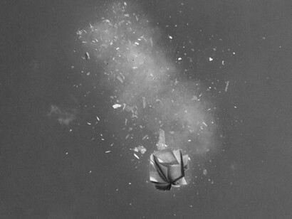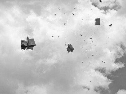 The installation is composed of thirty black and white photographs of these books, at the moment of impact by the bullet. The action behind each image remains the same, but the result always different, both poetic and violent. Alongside these photographs is a six minute video presenting the scene of the action, including both full shoots and close ups of the books flying through the air. Is this an act of violence, with its inevitable association of burning books and extreme right wing beliefs? Or is it simply a repetitive action, bringing to mind Nietzsche's theory of eternal recurrence? Although the great thinkers write these books, at the end they are no wiser about the human condition than the ordinary man.
