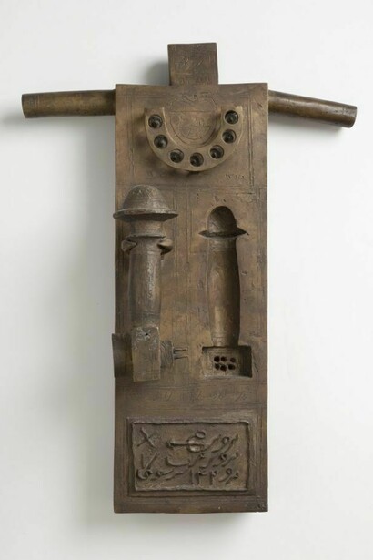 Adopting increasingly social roles, Iranian modern artists grappled with questions of how to reconcile their contemporary sensibilities with their Persian heritage. Inspired by classical Persian poetry, calligraphy, and miniature paintings, they also appropriated images from Shiism, the dominant form of Islam in Iran, to convey abstract concepts. The Abby Weed Grey Collection includes major early works by the most prominent Iranian artists,such as Siah Armajani, Kamran Diba, Faramarz Pilaram, Parviz Tanavoli, and Charles Hossein Zenderoudi. One work, Sealed Letter, a 1964 drawing by the noted sculptor Siah Armajani—who lives in Minneapolis and is today best-known for his large-scale public artworks—links calligraphy with the highly revered tradition of Persian poetry as a form of social critique. In the series Heech by renowned sculptor Parviz Tanavoli, abstract forms simultaneously constitute both word and image. Tanavoli, with the help of Mrs. Grey, established the first foundry in Iran at the University of Teheran. In his large bronze sculpture We Are Happy Locked Within Holes(1970), he demonstrates the distinct artistic vocabulary he forged from contemporary tools and artisanal objects—such as faucets, grillwork, keys—that he collected in local bazaars. The work converts a prison towerinto a temple of love. Clasped hands inhabit a lower cell while an upper cell encloses a phallus.Charles Hossein Zenderoudi, in Lock, n.d., likewise reveals his interest in Iranian folk cultures by depicting locks which, in Shiite culture, are believed to contain special powers. Often locks were attached to ceremonial public structures known as saqqakhaneh, a term that came to denote an Iranian art movement ofthe 1960s. Painter Faramarz Pilaram is— along with Tanavoli and Zenderoudi—among the first modern Iranian artists to employ both calligraphic forms and Shiite iconography. Pilaram’s Mosques of Isfahan series(c. 1962) refers to the famed houses of worship in his native city of Isfahan when it was the capital of the Safavid Empire.