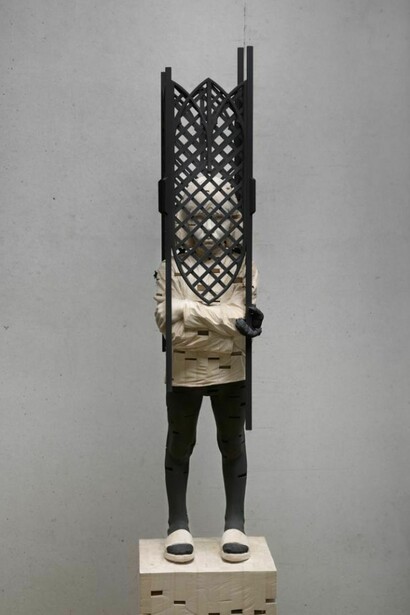 The traditional craft of "Herrgottschnitzerei", of great importance in his native South Tyrol, is the starting point for Demetz's technical approach. In constant engagement with traditional techniques and figures of the genre, the artist has developed a distinctive, contemporary language. His sculptures are not created by removing wood from a trunk, but by assembling a multitude of individual pieces. By consciously leaving gaps between these individual parts, Demetz refers to the concepts of completeness, emptiness, and the fragmentary.