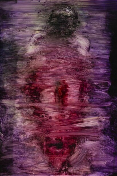 The works on show are best described as a prequel to Van Mullem’s earlier series, Movements of the Soul. Where older works depicted figures in a more traditional sense - still dream-like and ephemeral yet retaining a certain tangibility - these new paintings explore the concept of the ‘beginning’ in the most literal sense. In these new works, there is a clear movement towards Van Mullem’s concept and inspiration behind the series of creation or ‘origin’, illustrated through his exploration of colour, of light, of form, and of movement. The faces depicted are moving back towards this ‘origin’, as atoms replace features, symbolizing the matter from which these figures once materialized. We also start to see the introduction of titles in these new works, a departure from the previous series where all pieces were Sans Titre, perhaps an indication of the more interactive or more informative role that the artist as creator plays in this series. All invented subjects from the artist’s psyche, with Origin it is almost as if we are granted unrestricted access into Van Mullem’s artistic vision – John Malkovich style.