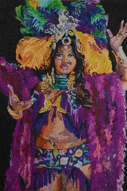 - Jamie Vasta, Dollya, 2013, glitter on wood, 20 x 16 inches