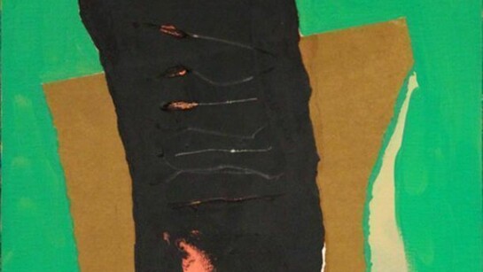 The exhibition at Bernard Jacobson Gallery, New York presents 12 works from the 1960s, 1970’s and 1980’s. In his 1960s collages, Motherwell incorporated "everyday" fragments, echoing Schwitters' merz technique developed 40 years earlier. Collages such as, Untitled 1967 (1967), which includes part of a mailing wrapper addressed to Motherwell from the Times Literary Supplement, is an example of this.