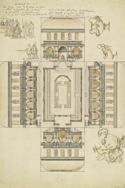The exhibition will also examine Kent’s projects for the redesign of Georgian London. On display will be architectural renderings and elevations for the facade of Horse Guards (1753) which show Kent’s lasting impact on the appearance of London today. Other architectural projects were never realised including the proposals he submitted for a new House of Parliament (1733–40) and interiors for the House of Lords at Westminster (1735-36), designs for which will be shown.