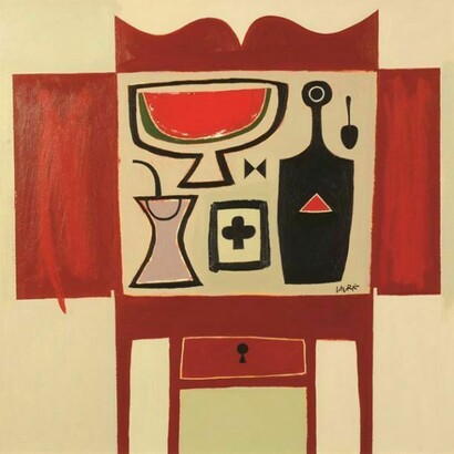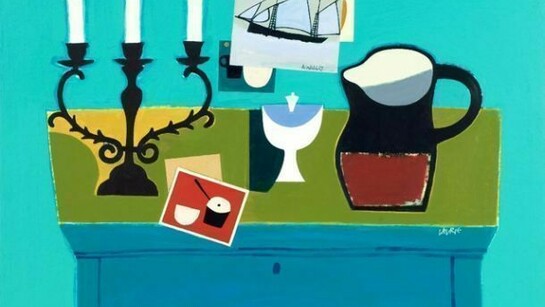 One of the great pleasures of Simon Laurie’s paintings is their capability of being appreciated at several levels. On first encounter they appear light hearted and joyous, both in their vibrant palette and choice of everyday items placed in jaunty juxtaposition. As with many painters of similar stature the rich decorative quality of each work belies a greater complexity.