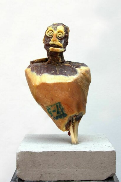 - Kasper Kovitz, Carnalitos (Unamuno), 2010, Iberico ham, concrete, 50 x 29 x 29 cm, © Kasper Kovitz, 2010, Image courtesy of the Saatchi Gallery, London