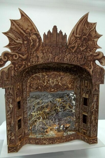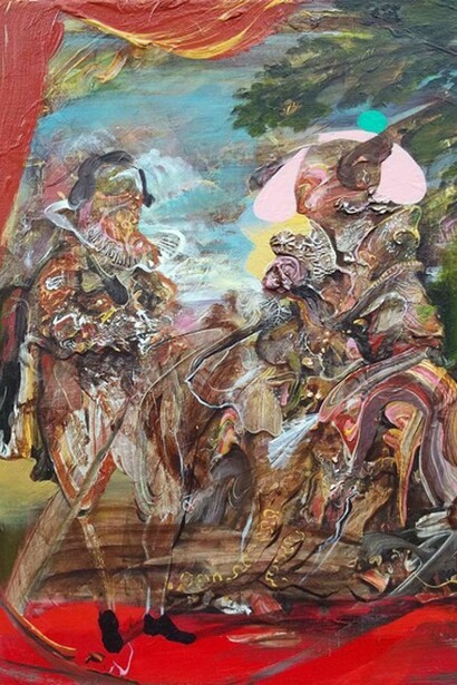 Andrews approaches his subject, be it an Old Master painting, or a narrative performed on a miniature stage, as a vehicle through which to consider different movements in art history, particularly over the past 100 years. He chooses to interpret this history as an adventure story in which a fantastical battle ensues between the historical big guns of the art world - Rubens, Velasquez and Titian – and the brimstone and fire of some modern and contemporary movements that would consign painting to obscurity, and deny its relevance to a world of pure ideas. One assumes that the ‘eucatastrophic’ moment might ensue, and generally, Andrews does seem given over to happy endings, although the paintings are never allowed to become sedatives.