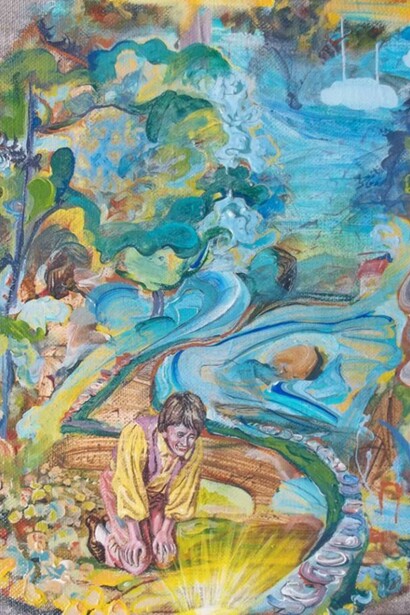 Andrew’s paintings function a bit like fairy stories; they open up the potential for people to view their own world, and the story of art, through a different lens. Peter Fuller wrote about how, in the past, an artist could ‘transform the physically perceived by the manifestation of allegoric devices like haloes and ‘human’ wings, whereas now this can only be realised through the transfiguration of formal means like drawing, colour and touch’. In Andrews’ work, the act of making becomes inseparable from the message that is being conveyed through the marks, one of the importance of transformation and redemption.