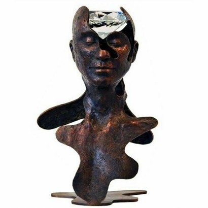Sukhi Barber’s sculptures are intended to bridge the cultures of East and West. Embodying the peace and compositional balance of ancient devotional art, they represent complex philosophical ideas with a simplicity and clarity that renders them accessible to the Western viewer. Exploring themes of hidden potentials, and the transcendence of our limiting view of a solid reality, her work often represents the negative space as being as important as the material itself, implying the dance of form and spirit, a constant state of transformation.