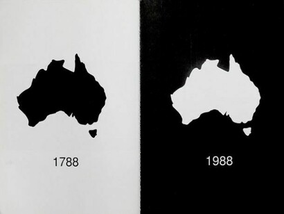 - Victor Burgin, Untitled (Australia 1788 - 1988), 1988, Double-spread, Parachute no 50, © Victor Burgin, Courtesy of Richard Saltoun Gallery