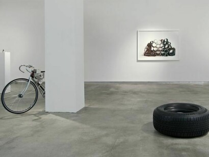 - Michel de Broin, left to right: Keep on Smoking, 2005-2010, Pile, 2010, Tour de force, 2013, Photo by John Berens, Photo courtesy bitforms gallery nyc
