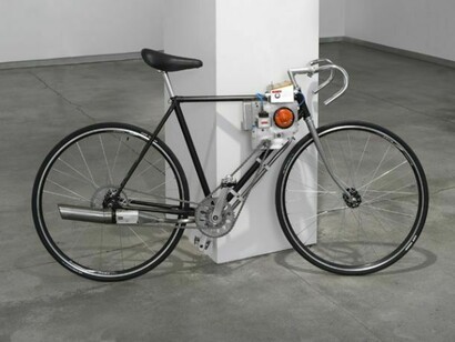 - Michel de Broin, Keep on Smoking, 2005-2010, bicycle, generator, battery, analog gauge, smoke machine, 39.37 x 33.46 x 23.62” / 100 x 85 x 60 cm, Photo by John Berens, Photo courtesy bitforms gallery nyc