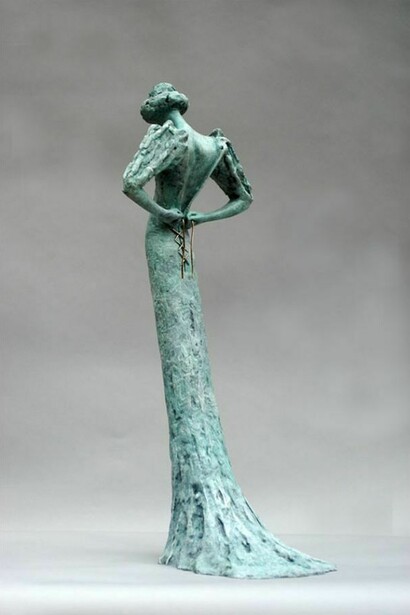 Venice is a theme that has occupied the sculptor since his first visit there nearly forty years ago. He was inspired by the art of giants such as Canaletto, Belloto, Guardi and Longhi (all of whom included masked figures in their paintings) to analyse the masked tradition further. Philip’s sculpture seems to rise organically from the ground. He draws on natural forms such as tree bark, rock or lava flow in these impressionistic sculptures. But as the eye moves from the body to the hands and face, the finish becomes gentler and more delicately worked. This is where the drama is to be found.