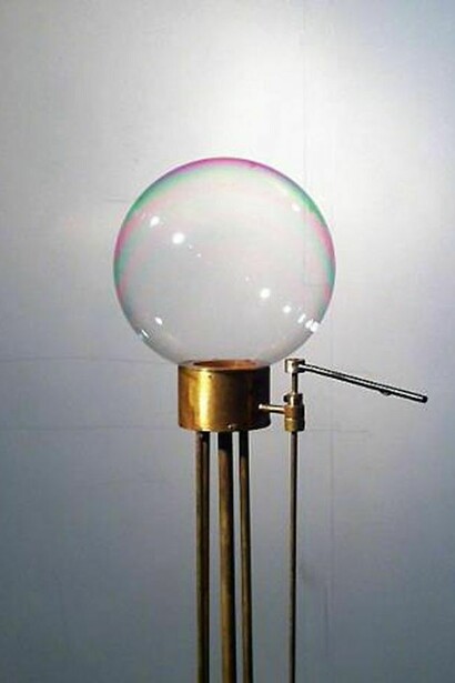William Waterhouse 's mechanical sculpture Bubble endeavours to create an everlasting bubble - a thin arm gently rotates over a metal tube to produce a single bubble that after a certain duration deflates but is soon replaced by a new bubble.