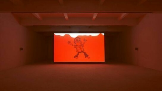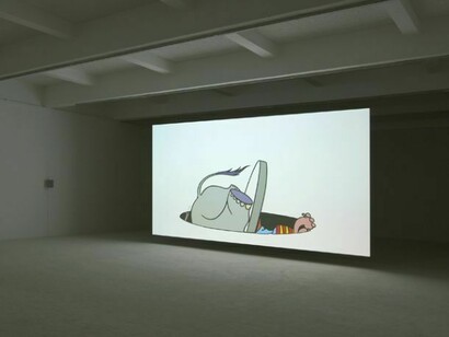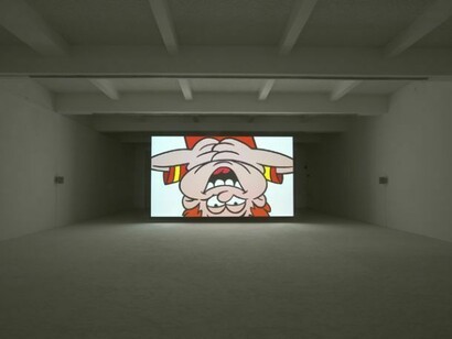 All images Jordan Wolfson, Raspberry Poser, 2012, digital video, computer-generated imagery, hand-drawn animation, sound, 13′ 55” (video still). Installation view, Chisenhale Gallery. Produced by Redcat, Los Angeles in collaboration with Stedelijk Museum voor Actuele Kunst (S.M.A.K.), Ghent. Photo: Andy Keate. Courtesy the artist and Sadie Coles HQ, London; T293, Naples/ Rome; and David Zwirner, New York.