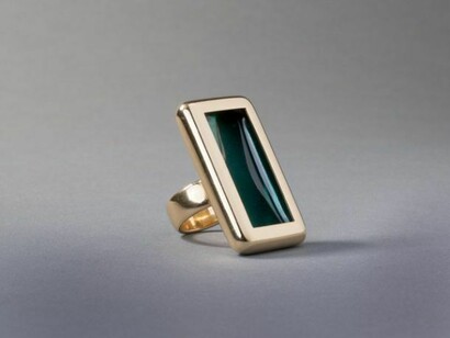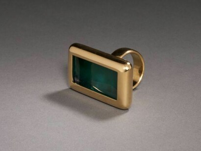She says: “We have invited artists to make jewellery using common-place rather than precious stones including marble, alabaster or even pebbles. We want the jewellery to be judged for its artistic merit and not its material content. Greek artist Sophia Vari, for example, has created a unique pendant from marble (pictured above), whilst Tim Noble and Sue Webster have played with mudlarking and crown jewels, to create a silver cast raven’s claw clasping a stolen pebble. Meanwhile, New York based artist Rob Wynne has fashioned a ring using a stone from his friend’s fish tank (pictured below). The stone has been cut as you would a diamond or sapphire and set in 18ct gold. The result is a whimsical piece that glows with a bluish hue: it is beautiful for the simplicity of concept and design”