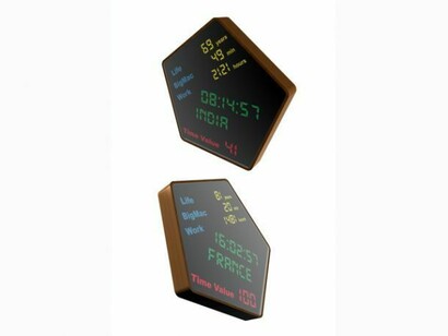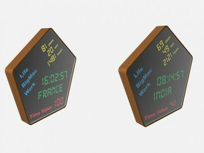 Time Value refers to the eponymous economic concept in all industrialized countries. This calculation is used by companies for their choice of location and relocation. A calculation based on hourly labor costs, effectiveness of lambda worker and political risks, generates a number that characterizes the country. On the walls of the gallery are presented digital clocks set to the time of different countries, but here, time is not the same length as it is in Paris or Hong Kong. Time is set to the value. The shape of the clocks is not trivial, it is that of the znak kachestva, the trademark of quality products manufactured in the USSR.