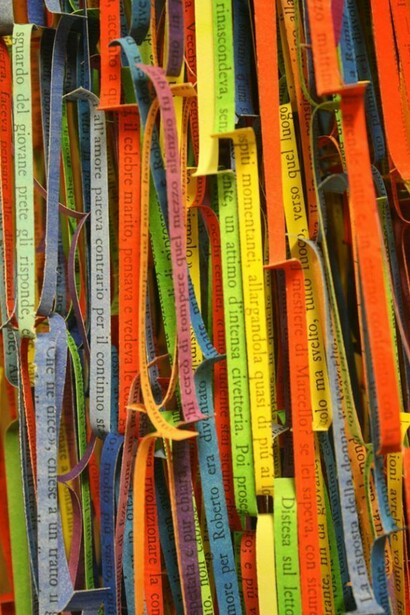 - Jukhee Kwon, Arlecchino l'egoista (detail), 2013. Book in Italian, ca. 350 cm.Image courtesy October Galelry London