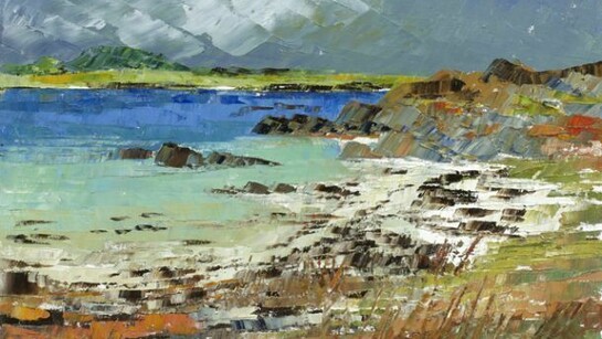 The rhythms of the palette knife scrape and sculpt their way across the canvas. The textural qualities that Frances produces in her work are her hallmark; the rawness and strength of these strokes effectively conjures up not just the wild Scottish landscape but also the very strata of the rocks. It is not only through the gentle touch of her palette knife that Frances has won an army of admirers; the jewel-like colouring in her paintings shows her powers of observation, recreating the subtle moods of the area that often go unnoticed and unappreciated.