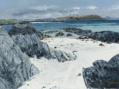 The work in this exhibition has again been inspired by Francis’ spectacular Scottish West Coast surroundings. The appeal of these places has never diminished. “It is something about the light,” she says when explaining how she is still fascinated by this landscape, “you get something new every time.”