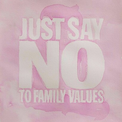 - 6. John Giorno, Just Say No to Family Values, 2013, Magenta watercolour on paper, 44.9 x 44.4 cm