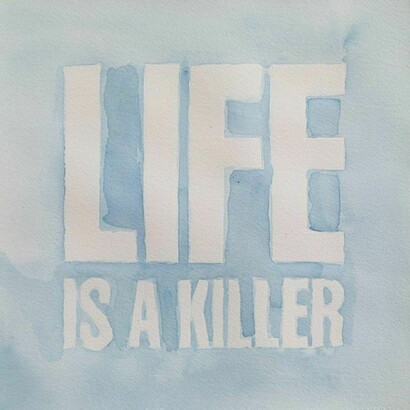 - 5. John Giorno, Life is a Killer, 2013, Blue Indigo watercolour on paper, 40.5 x 40.9 cm