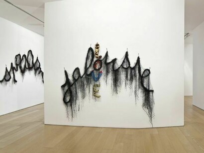Words and writing are of critical importance to Messager’s work. From the beginning of her career the artist used writing in various ways and methods. Printed or handwritten texts, words written on walls, copied or repeated on papers, embroidered or sculpted, words have a prevailing character in her work. Apart from the intricate meaning a word has, for Annette Messager it possesses a visual power. The form of each word, has as much significance as its meaning and the artist by manipulating words and texts emphasizes the visual and plastic image of the word.