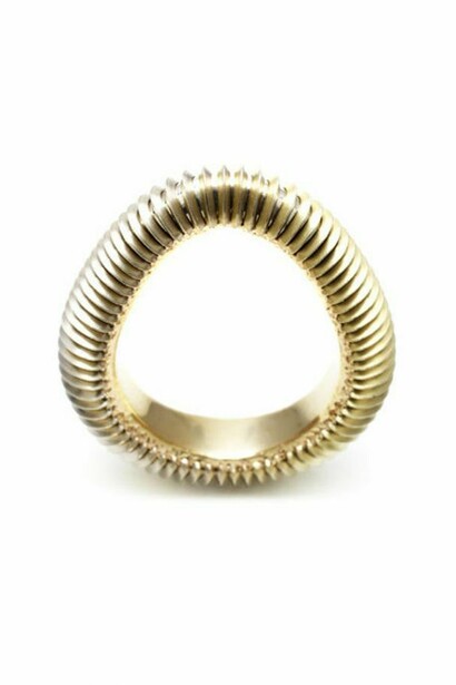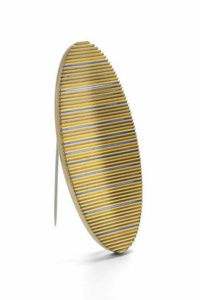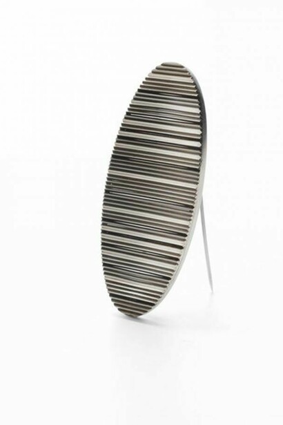 His interest in Illusion and the mesmerizing visual effects of Optical Art are cleverly adapted into his jewellery designs. By incorporating these principals, his aim is to create striking, yet delicately shaped pieces which appear to shift and change as the eye moves across them.