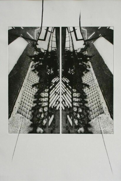 Colin Aggett: Trained originally as a scientific photographer , he spent most of his working life in university audio-visual and media studies departments. Following retirement he took up printmaking and chose to explore image-making using photo-etching and digital techniques. His early work concentrated on imagery based on natural structures of plants, seeds and man-made shapes in architecture and industrial objects. More recently he has been exploring combinations of intaglio and digital prints, often working within a square grid format. He is currently using collagraphic techniques to make prints with strong textural and embossed characteristics.