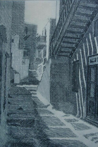 Julia Martin: Her interest in printmaking dates from the late 90s in Somerset, where the emphasis was chiefly on woodcuts. Since then, in London, she has been mostly involved in the many techniques of intaglio printing, while continuing to draw and paint. She chooses themes from both home and abroad and whether these stem from affection for the long and closely observed familiar, or from the excitement of foreign places, she tries to interpret imressions and memories, choosing the scenes, events, people and objects which most faithfully portray her response. She has exhibited prints in Taunton and Yeovil in Somerset and in St. John's, Smith Square and the Coningsby Gallery in London.