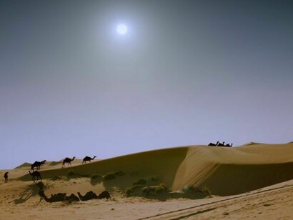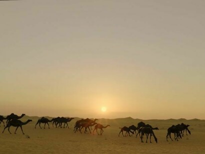 One of the most powerful and urgent voices to emerge from the Middle East in the last decade, Wael Shawky explores systems of belief and reinterprets faith, myth and history through the lens of the modern media. At Lisson Gallery, Shawky presents a new work, Dictums: Manqia I (2014), in which herds of prize black camels are driven across the desert, perhaps en route to one of the prestigious camel parades or beauty pageants that are held in the Gulf region, known as mazaynas. These rare, dark breeds of camel are coveted across the Arab world, with those winning ‘best in show’ often being traded for astronomical sums and even appearing on their own dedicated television channels. Having previously worked with the indigenous cultures and traditions of nomadic Bedouin tribespeople, Shawky similarly charts patterns of physical, economic and intellectual migration in this video, shot by the artist on location near Abu Dhabi.