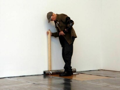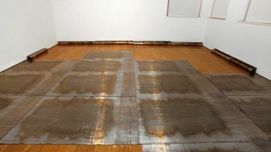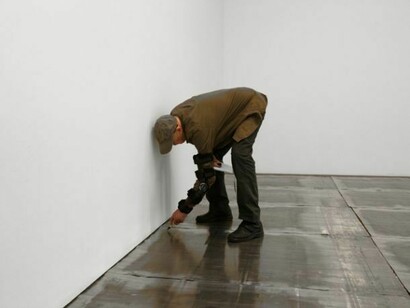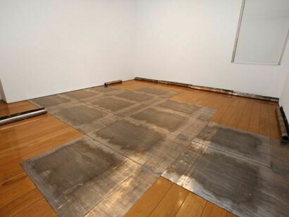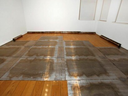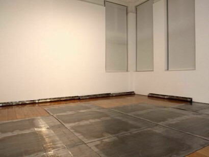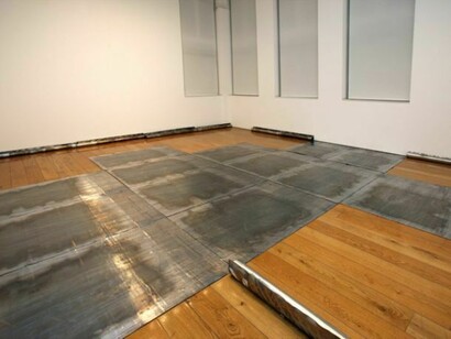 The final show to be staged in Karsten Schubert Gallery's Soho space, the work will take over an entire room and consists of sheets of lead, rolled and then pushed towards the gallery walls. The lead sheets themselves are specified to a particular weight, in relation to the gallery surface area. The physical act of rolling out the lead becomes part of the work, with the work being interrupted at various stages and documented. The work is completed when all of the lead is rolled up against the walls and the lead is removed and sold back as scrap to the supplier at the end of the exhibition.