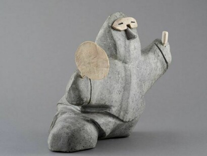 - Thomas Akilak (1961–), Drum Dancer, 1987, Grey serpentine and caribou horn, 30 x 35 x 18 cm, © Scott Polar Research Institute