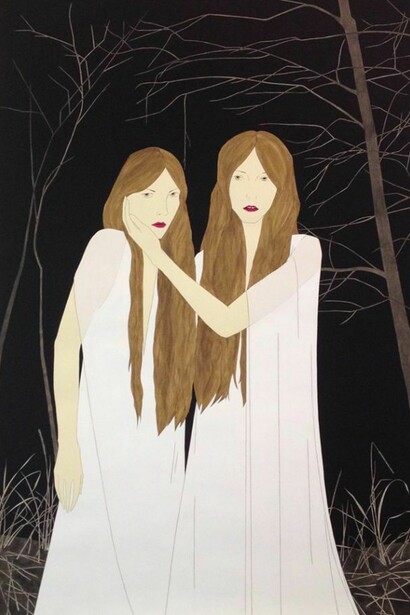 “Once upon a time, in a time both past and present, there lived an ancient castle upon a rock – surrounded on all sides by a dark and churning sea and only accessible at low tide. Over this castle a spell has descended, a spell of sleep – rendering the inhabitants somnambulists trapped halfway between life and death and forced to walk in languid nightmares. From the castle and into the woods, two sisters have fled. From their makeshift shelter they try every day to craft a spell to break the spell – to awaken the inhabitants and set them free.” Evocative of gothic tropes and imagery culled from contemporary fashion, Marci Washington’s watercolors in Sleeping Spell lead the viewer through this tale of enchantment.