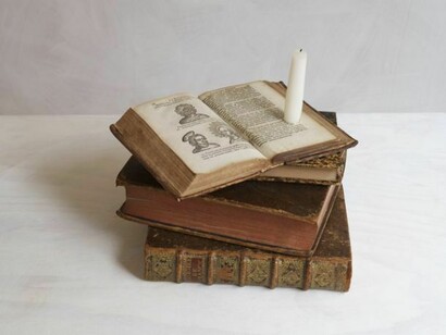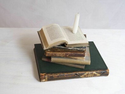 In this d'Hanis & Lachaert’s vanitas interpretation a number of traditional references converge. The burning candle points to the passing of time, the books, once a symbol of wisdom, now transformed into a decorative object, each book with a hidden story, completed with the personal story of the previous owners.