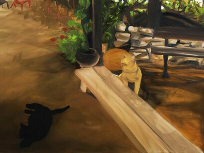 - Oren Ben Moreh, Cat waching a cat, 100 x 150 cm, 2013
